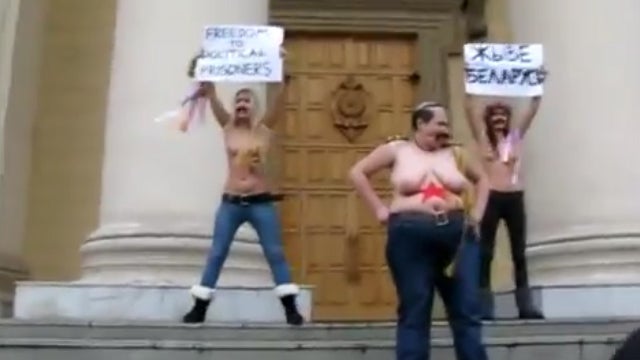 Nach einer Protestaktion gegen den weißrussischen Präsidenten Alexander Lukaschenko sind drei ukrainische Feministinnen nach Angaben ihrer Gruppe von weißrussischen Geheimdienstagenten misshandelt worden.