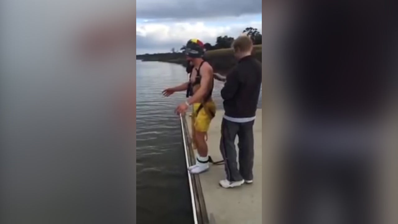 Bräutigam musste einen fiesen Bungee-Jump Streich über sich ergehen lassen.