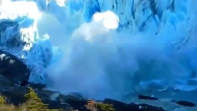 Auf dem Amateurvideo ist eine Eisbrücke am Perito Moreno-Gletscher zusehen, aus der zunächst nach und nach Stücke herausbrechen, bis sie schließlich ganz in sich zusammenstürzt und dabei Teile des Gletschers mit sich reißt.