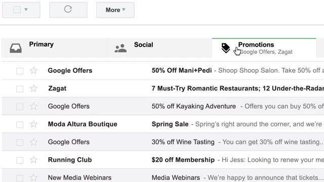 Nutzer können u.a. eingehende E-Mails nun automatisch in fünf verschiedenen Fächern sortieren lassen, die in eigenen "Tabs" (Laschen) dargestellt werden. So gelangen etwa alle Mails von Sozialen Netzwerken wie Facebook und Twitter in einen eigenen Bereich und stören dann nicht mehr im allgemeinen Eingangspostfach mit persönlichen E-Mails.