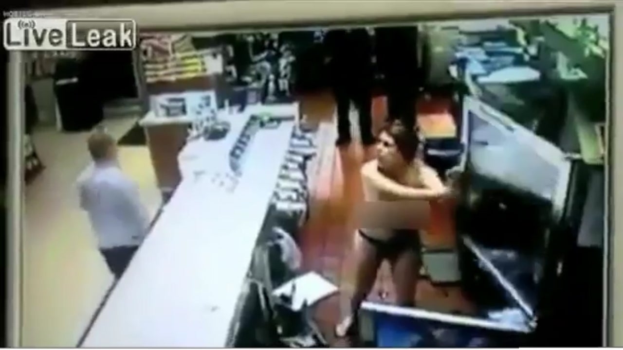 Gestört: eine fast gänzlich unbekleidete Frau zerstört in Florida (USA) eine McDonalds-Filiale.