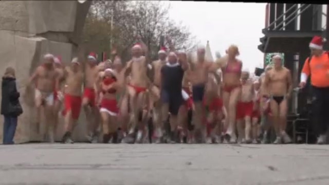 Weihnachtsmänner lieben es kalt. Das bewiesen hunderte Weihnachtsmänner und -Frauen am Sonntag in Budapest. Bei Temperaturen um die 5 Grad Celsius rannten sie halbnackt durch die Hauptstadt.