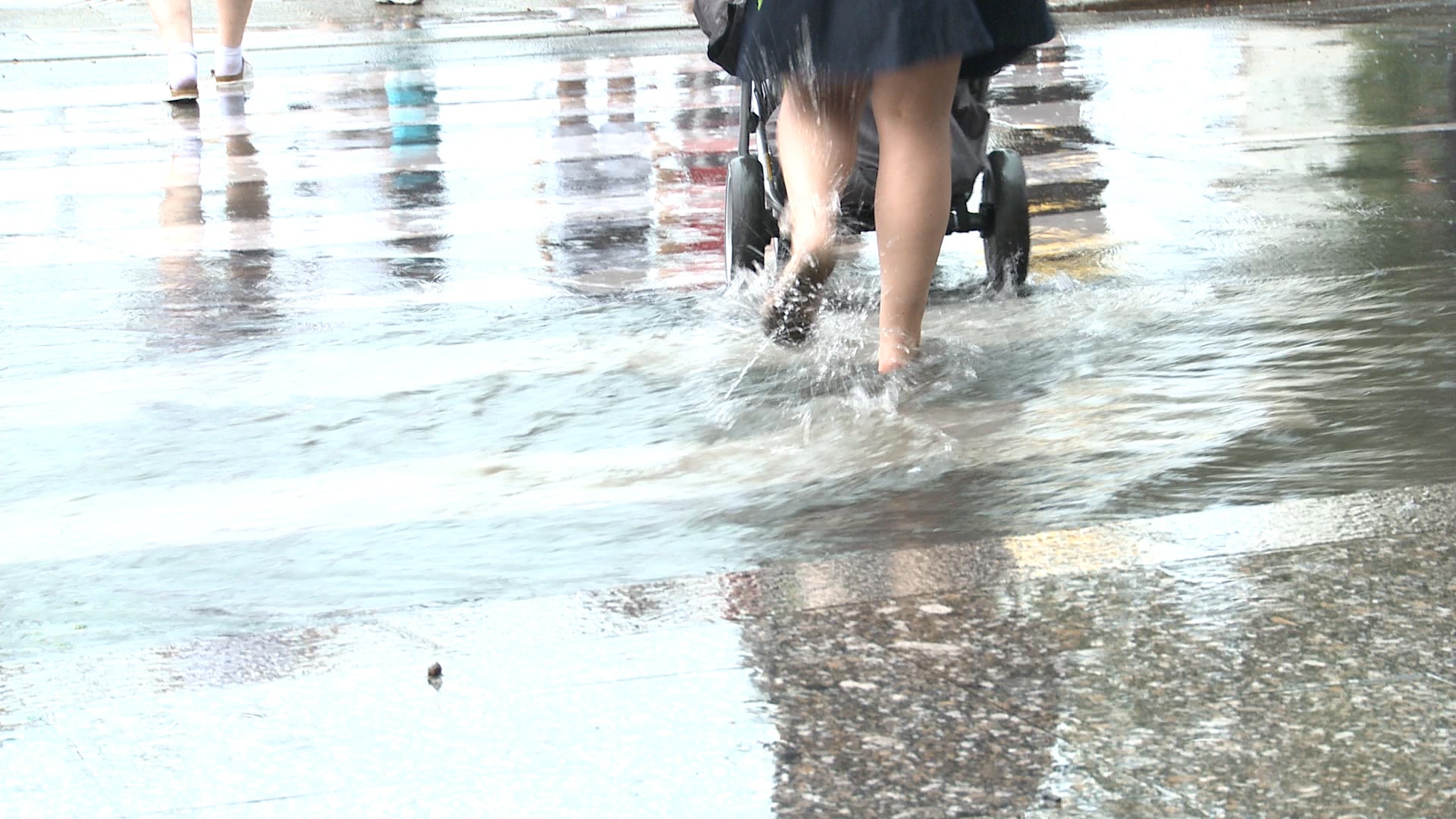 In Wien kommt es zu einem starken Gewitter. Zahlreise Passanten fliehen vor dem Regen.