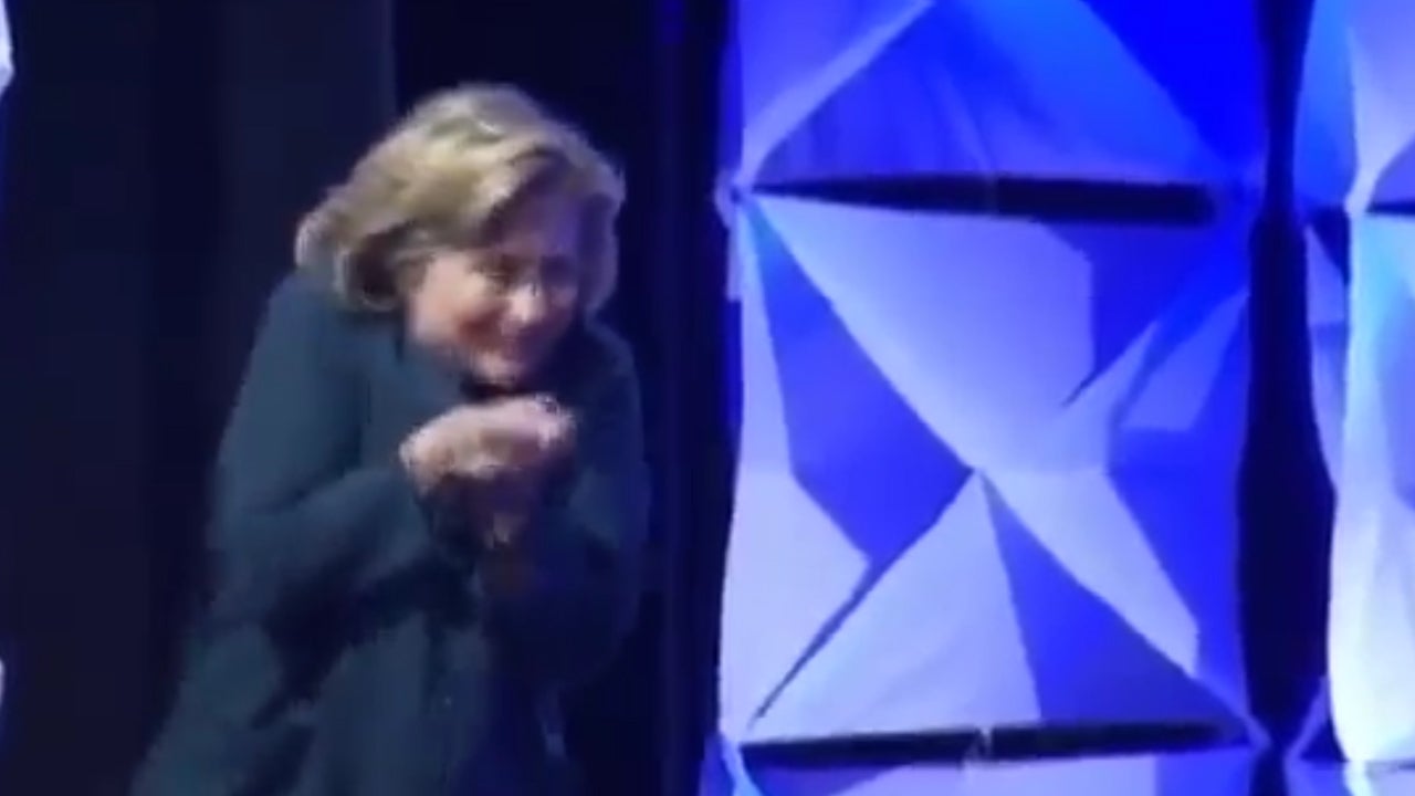 Wurfgeschoss in Las Vegas: Eine Frau hat einen Schuh nach Hillary Clinton geschleudert. Die Ex-Außenministerin wich geschickt aus und ging ihrerseits zum Angriff über.