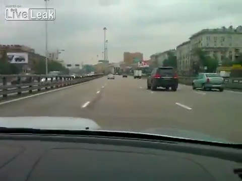 Ziemliches Glück hatten diese Geschwindigkeits-Rowdys, als sie beim Rasen über Moskaus Autobahnen in eine stehende Kolonne krachen.