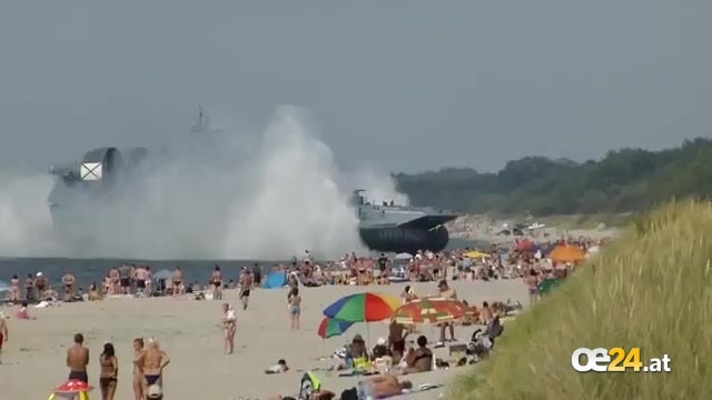 Normalerweise hat man am Strand nur Angst vor einem eventuellen Sonnebrand oder vielleicht vor Haien. Aber auf diesem belebten Strand in Russland hatten die Leute nicht mit so etwas gerechnet. Ein gigantischer Hovervraft manövrierte auf den Strand um dort an Land zu gehen. Laut Regierung sei der Vorfall nichts Ungewöhnliches. Das ist wohl Ansichtssache.