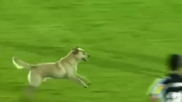 Die Partie der kolumbianischen Mannschaften befand sich in der 67 Minute, als der Hund den Weg auf den Rasen fand. Vielleicht um selbst einmal vor großem Publikum Ball zu spielen...