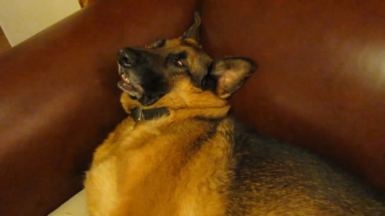 Schäferhund schläft tief und fest als er plötzlich geweckt wird.