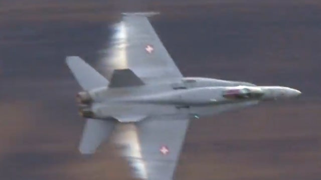 Diese spektakulären Aufnahmen einer F/A-18 Hornet sind einem Amateurfilmer bei einer Flugshow in der Schweiz gelungen.