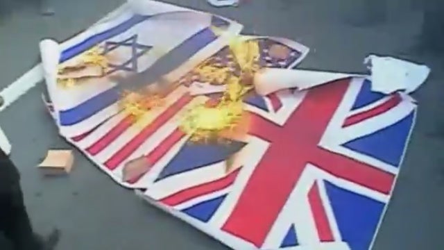 In der iranischen Hauptstadt Teheran haben hunderte von Demonstranten das Gelände der britischen Botschaft gestürmt. Dort warfen sie Fensterscheiben ein und verbrannten die britische Flagge.