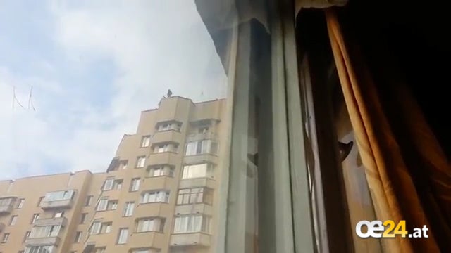 Völlig verrückt. Dieser Russe hat sich im Innenhof eines Häuserblocks eine illegale Anlage zum Bungeespringen gebaut.