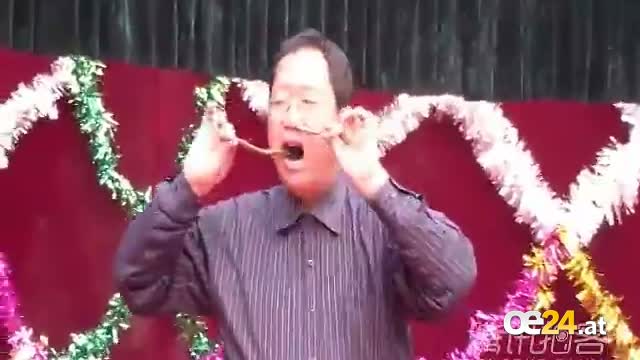 Bei den Feierlichkeiten zum Jahr der Schlange kamen so manche Chinesen auf völlig absurde Ideen, was man mit dem Reptil so alles anstellen kann.