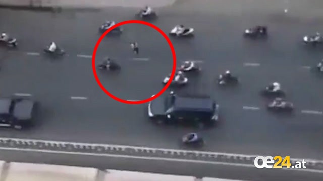 Ziemlich mutig zeigen sich diese vietnamesischen Fußgänger. Selbst der immens starke Verkehr kann sie nicht davon abhalten, die Straße zu überqueren.