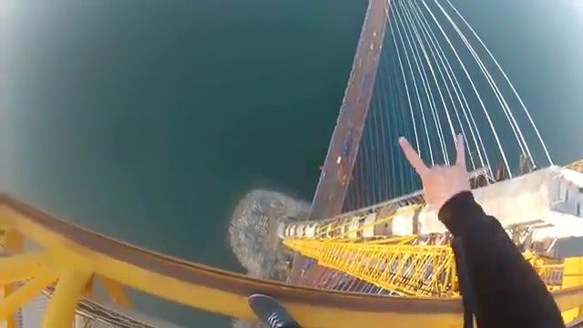 Diese beiden Jugendlichen haben scheinbar Nerven aus Stahl. Und noch wichtiger: keine Höhenangst. Sie haben es sich zum Ziel gesetzt einen Kran zu besteigen, der bei einer Schrägseilbrücke aufgestellt ist.