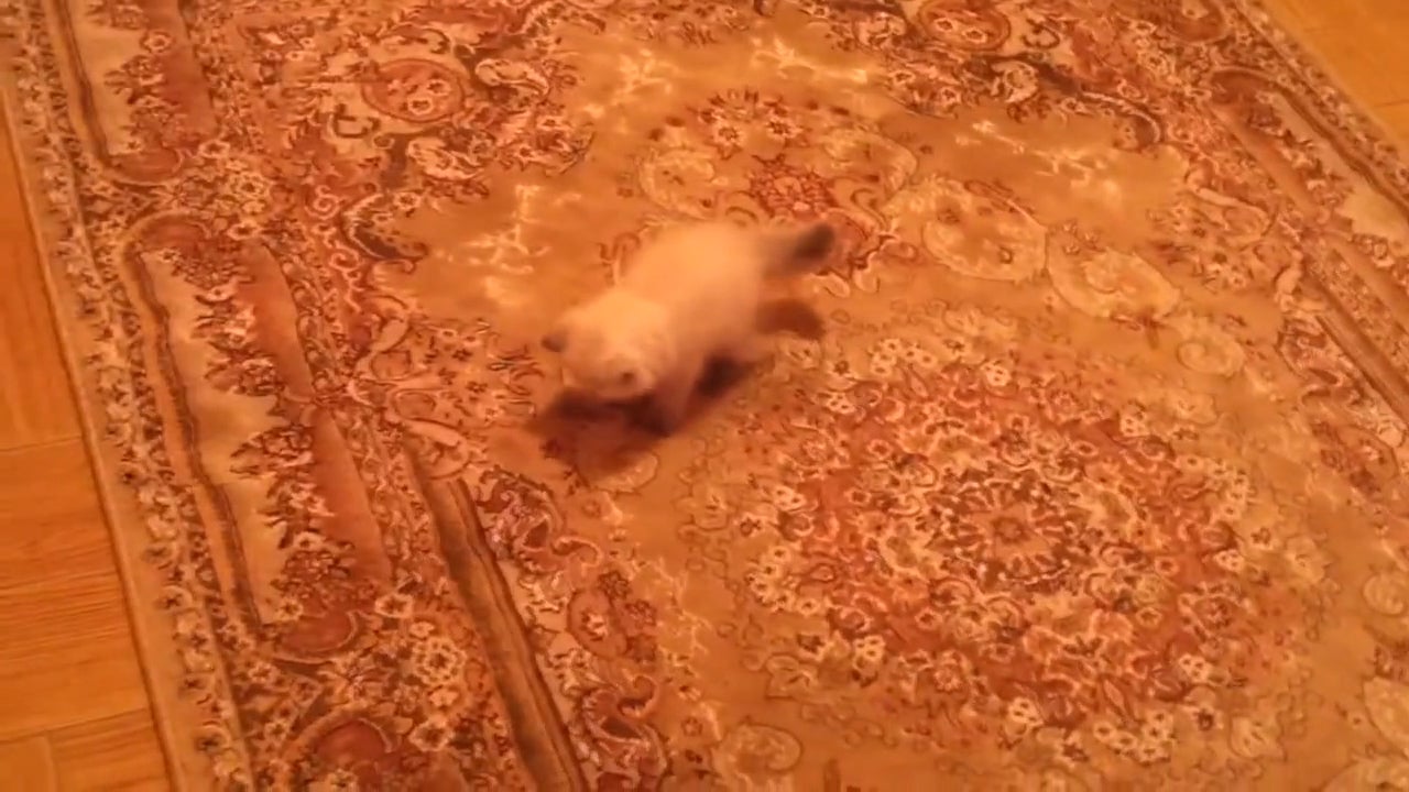 Süßes Kätzchen hat Angst vor dem Teppich und weiß nicht, was es tun soll.