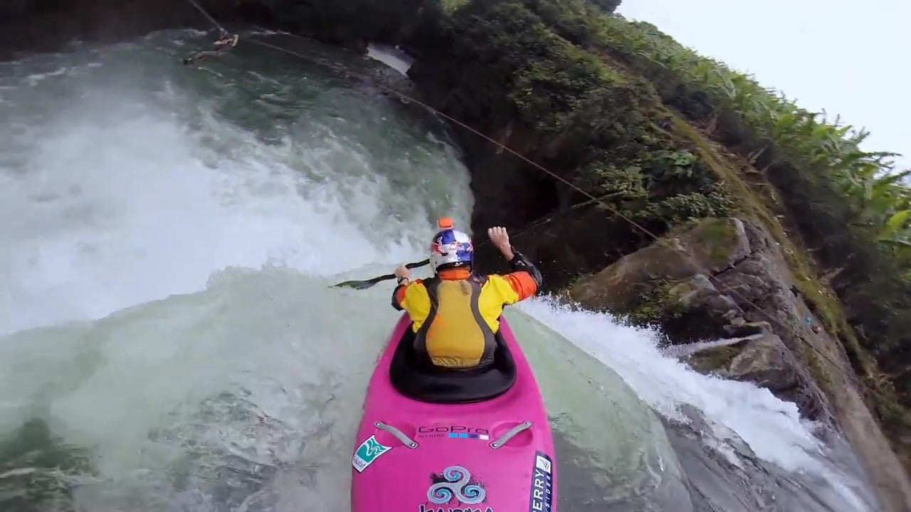 Dane Jackson ist ein professioneller Kajak-Fahrer. Im mexikanischen Vera Cruz stürzt sich der 20-Jährige einen 18 Meter tiefen Wasserfall hinunter.