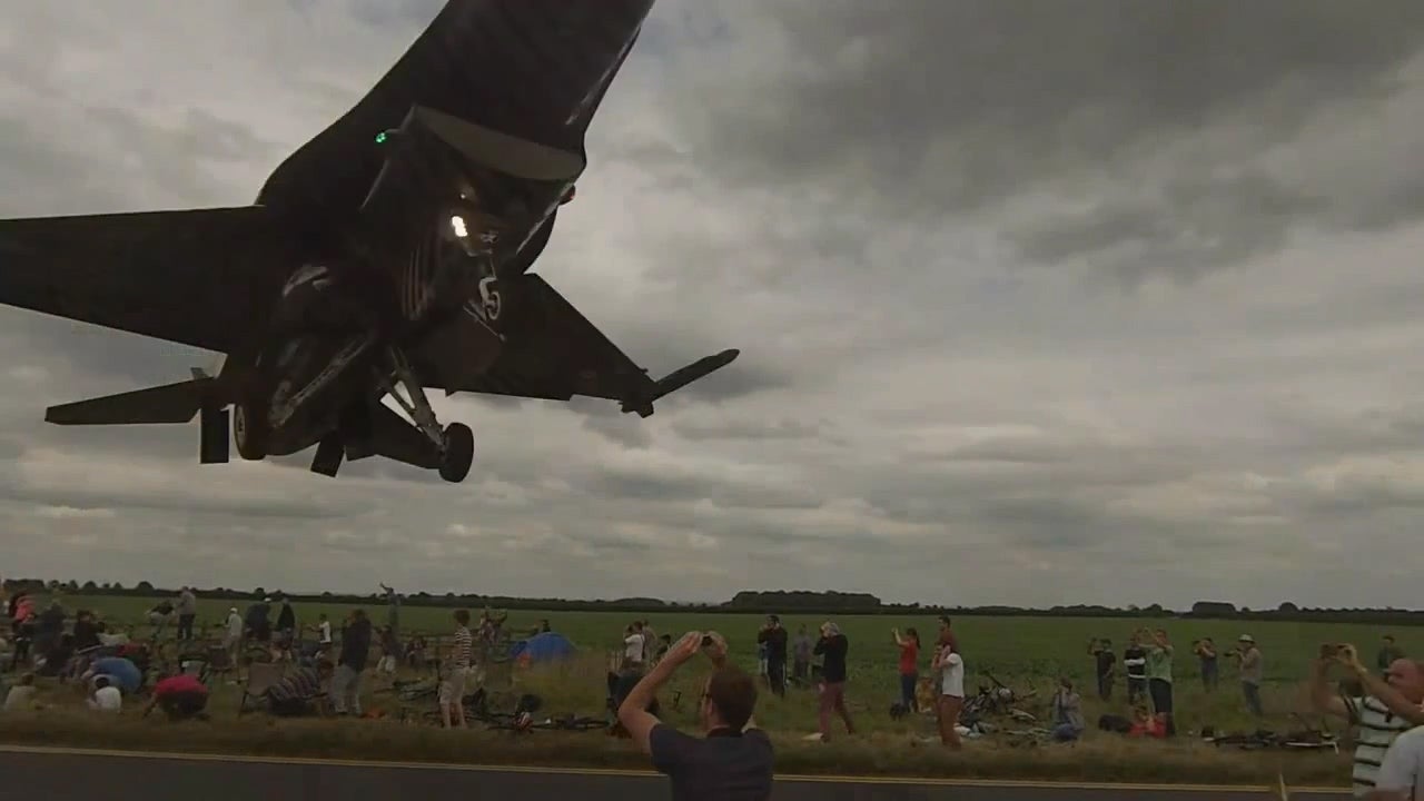 Ein F-16-Pilot strapaziert mit seinem Anflug die Nerven der Hartgesottenen.