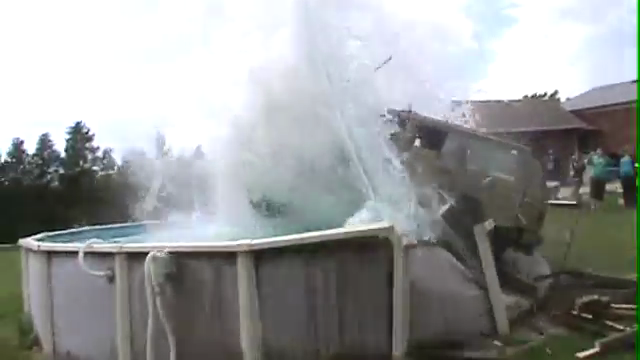 Eine Erfrischung der etwas anderen Art suchen diese durchgeknallten Kanadier mit ihrem Jeep und rasen mit Karacho in ein altes Swimming-Pool.