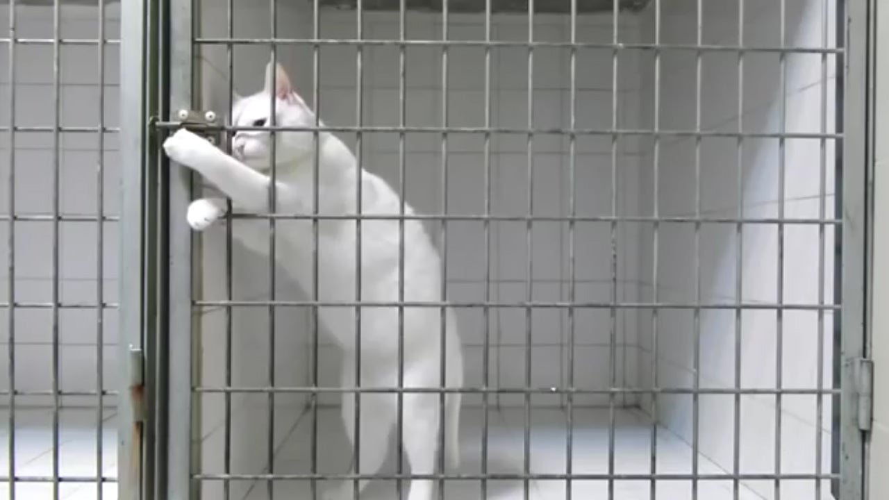 Diese clevere Katze befreit sich selbst aus einem versperrten Käfig.