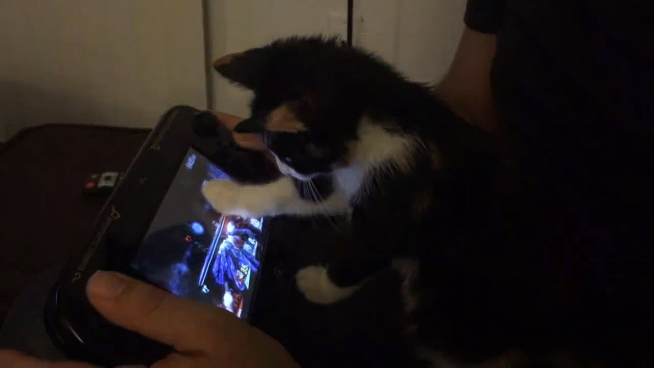 Diese niedliche Katze spielt gemeinsam mit ihrem Besitzer Computerspiele.