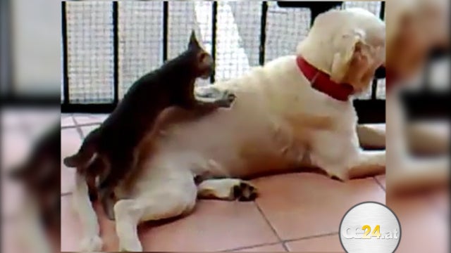 Normalerweise vertragen sich Hunde und Katzen nur mäßig. In diesem Fall hier bestätigt jedoch die Ausnahme die Regel.