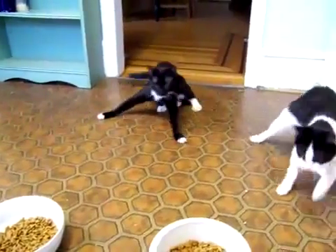 Mann könnte denken, diese beiden Vierbeiner haben von der falschen Flasche gekostet... - Es sind jedoch die Nachwirkungen einer Narkose, die die beiden Katzen hier zum Taumeln bringen.
