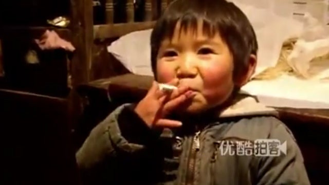 Unglaublich- dieses Kind aus China begann schon mit 3 Jahren zu rauchen, und die Eltern scheinen nur amüsiert darüber.