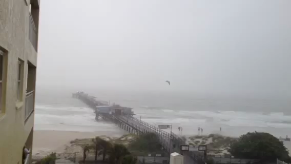 Während die meisten Menschen bei Tropenstürmen eher in den eigenen vier Wänden bleiben, treibt es diesen Draufgänger an den Strand um ein wenig Kite zu surfen. Windstärken von über 80 km/h nutze er für einen gigantischen Sprung über ein Pier an Floridas Küste.