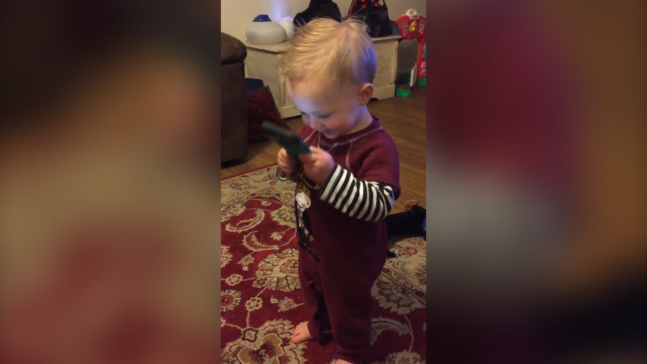 Dieses Kleinkind dreht wegen eines Anrufs auf seinem Handy völlig durch.