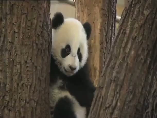 So süss ist das kleine Wollknäuel: Der 5 Monate alte Panda klettert auf Bäumen herum und ist quietschvergnügt.