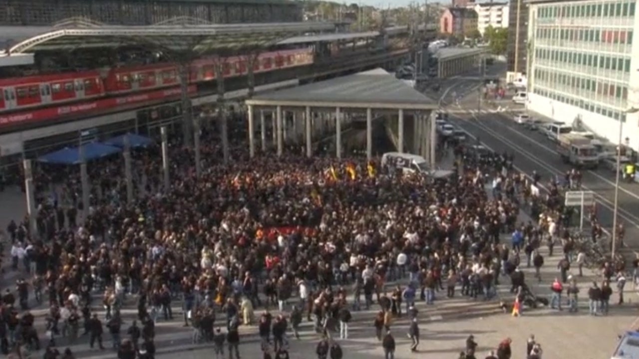 Bei der Hooligan Demonstration hatte die Polizei sichtlich Mühe, die Kontrolle zu behalten.