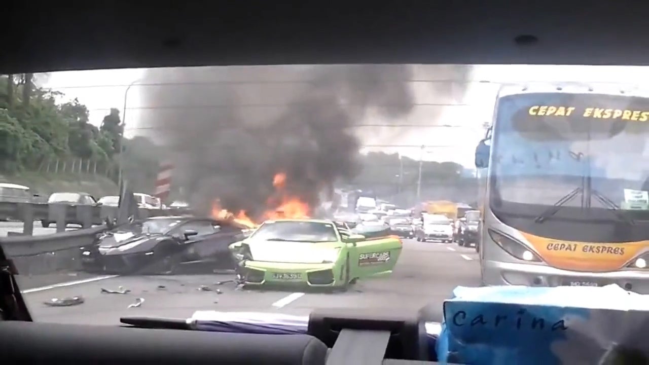 Kurioser Szenen auf einer Autobahn in Malaysia. Es könnte sich dabei um einen der teuersten Verkehrsunfälle aller Zeiten handeln. Denn insgesamt drei Lamborghinis waren in einen Unfall verwickelt.
