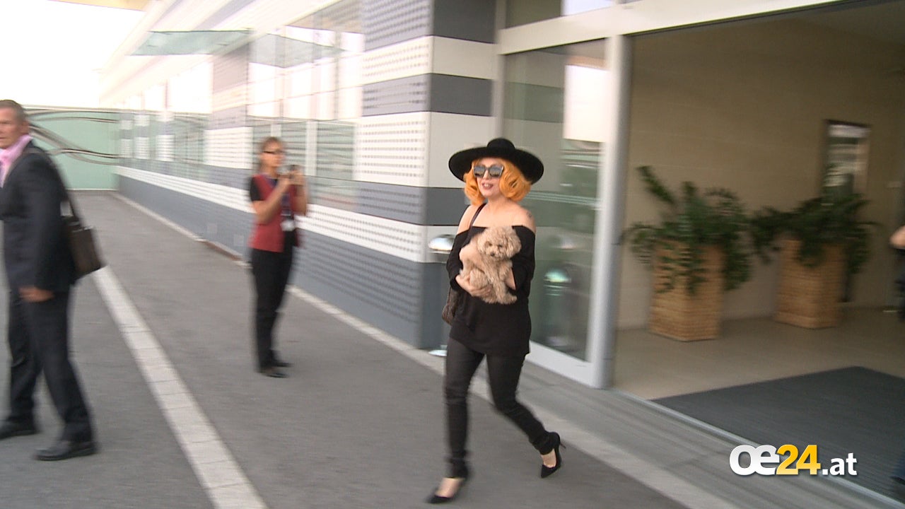 Lady Gaga ist in Wien. Der Superstar ist am Freitag-Nachmittag etwas später als erwartet mit ihrem Privatjet in Wien Schwechat am VIP-Terminal gelandet. Mit im Gepäck hatte ihr Schoßhündchen Fozzi. Begleitet wurde sie außerdem von einigen Bodyguards, ein großes Sicherheitsaufgebot der Polizei stand am Flughafen bereit.
