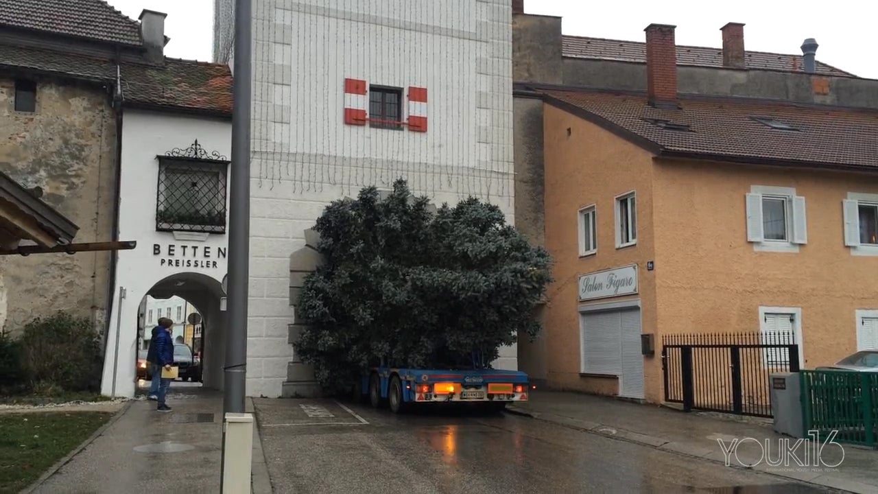 So dubios sieht es aus, wenn ein riesiger Christbaum angeliefert wird.