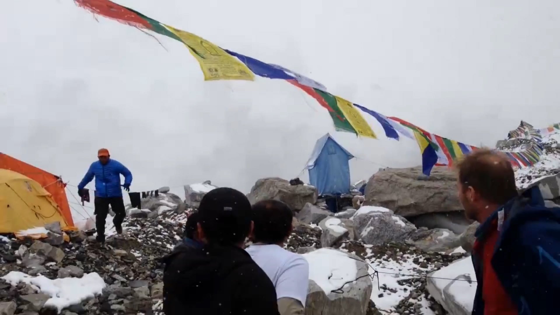 Nach dem Erdbeben der Stärke 7,8 kommt es zum Lawinenabgang am Mount Everest.