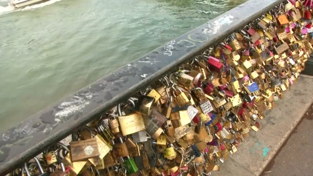 An einer Paris Fußgängerbrücke werden die vielen Schlösser inzwischen zur Gefahr.