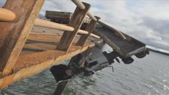 In Carlopolis, im Süden Brasiliens, fuhr ein LKW auf einer Autobahnbrücke über die Leitplanke, nachdem ein Fahrzeug vor ihm plötzlich bremsen musste. Das Fahrzeug verkeilte sich mit der Leitplanke, wodurch ein Absturz verhindert wurde.