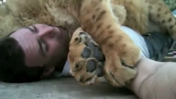 Das Cedar Cove Feline Conservancy & Education Center ein ebenso entzückendes, wie erstaunliches Video veröffentlicht: Ein Löwe räkelt und streckt sich auf dem boden und unter ihm liegt, sozusagen als sein polster oder teppich sein betreuer