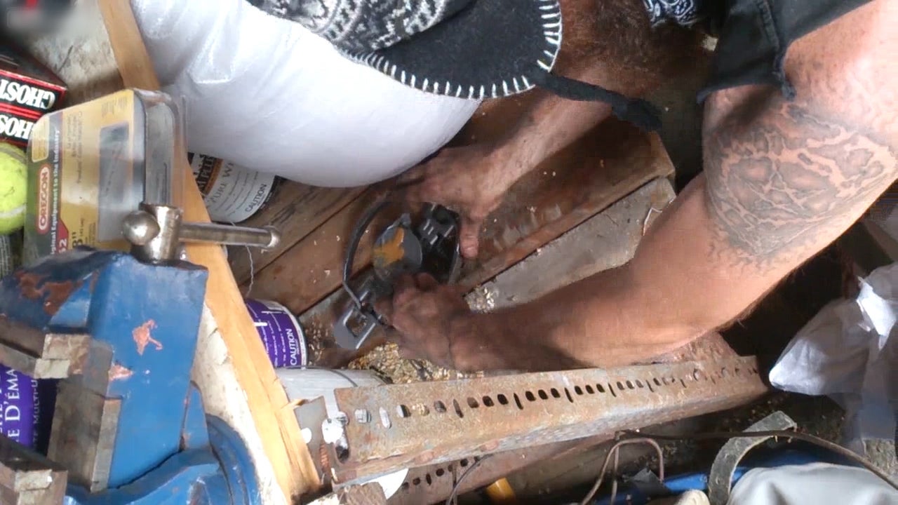 Diese Bärenfalle schnappt zu als dieser Mann seine Hand hinein steckt.