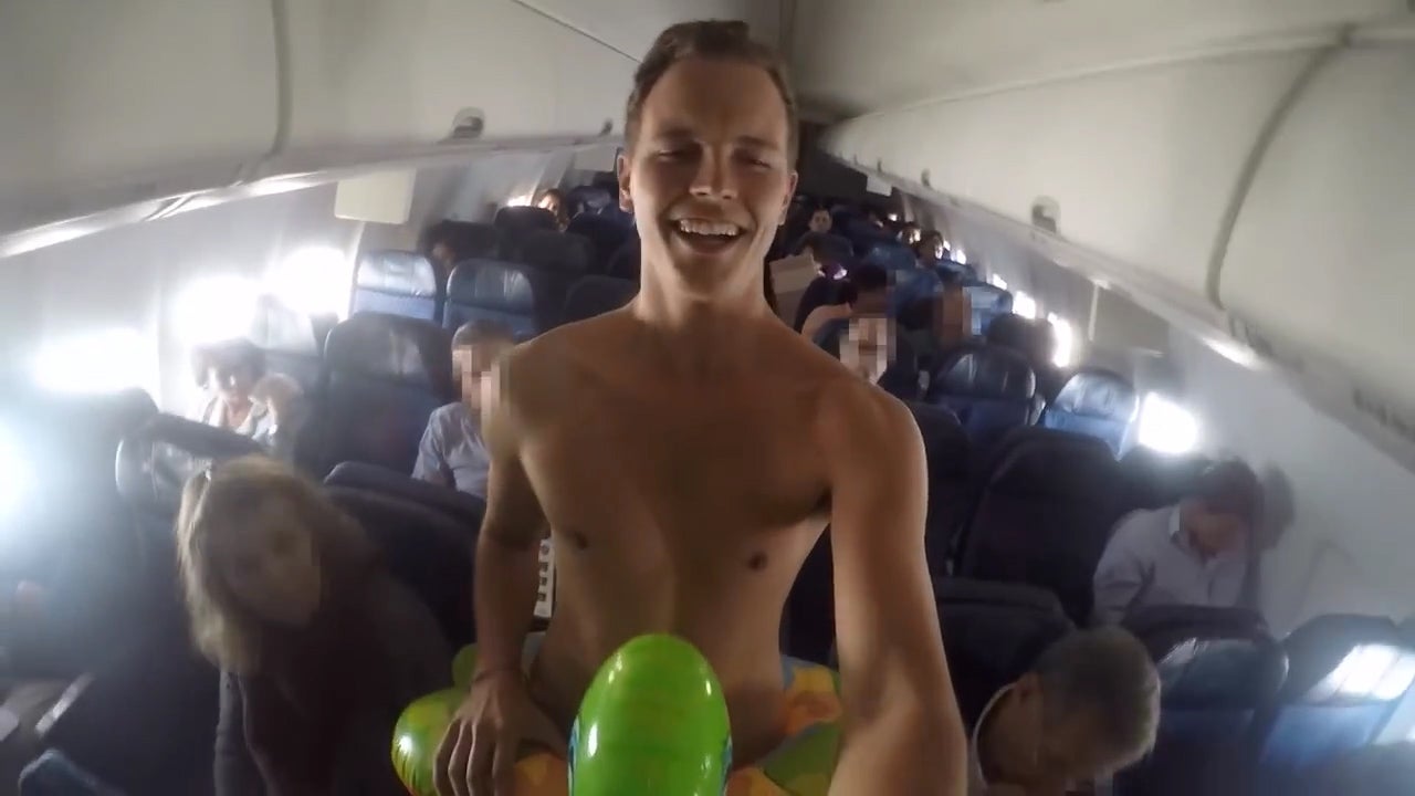 Aus Langeweile marschiert dieser junge Mann nackt durch ein Flugzeug.