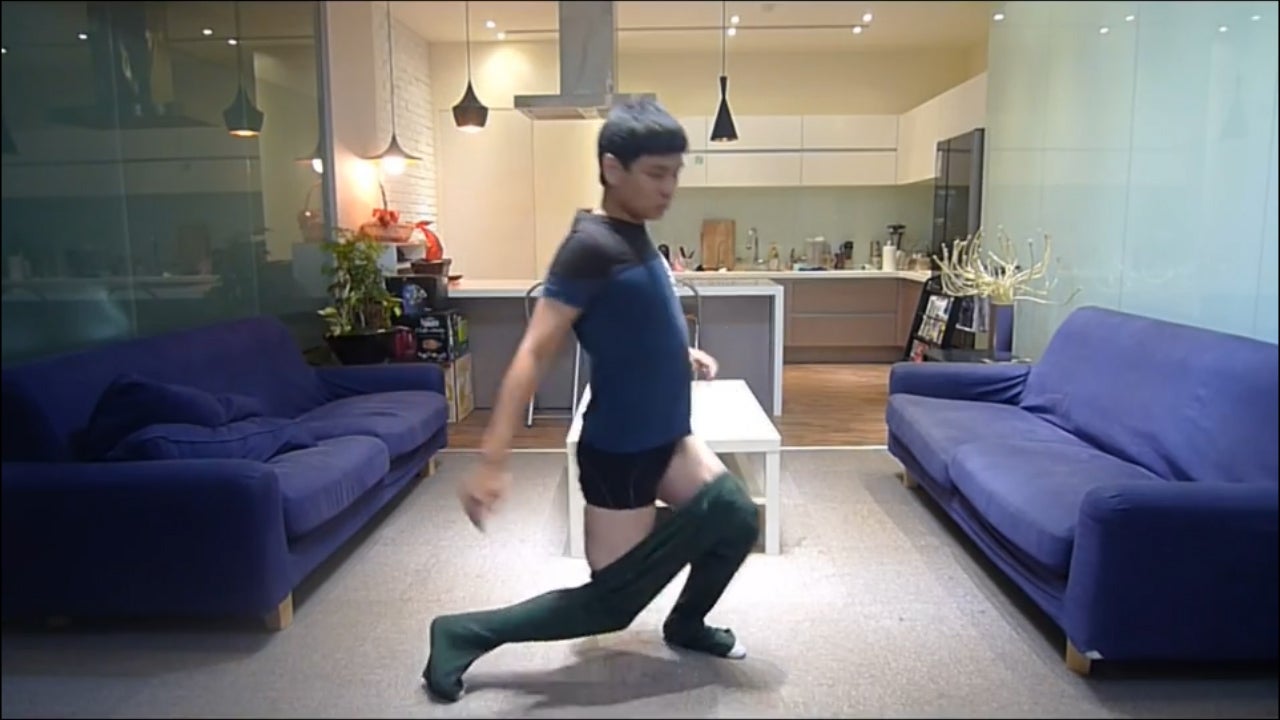 Wie man tanzend seine Hose ohne Arme anzieht zeigt uns dieser junge Mann eindrucksvoll.