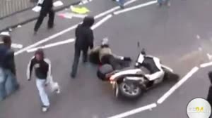 Neue schockierende Bilder der Ausschreitungen in London der vergangenen Woche. Ein Mopedfahrer wird von mehreren Jugendlichen verfolgt, angegriffen und schließlich von seinem Gefährt gerissen.