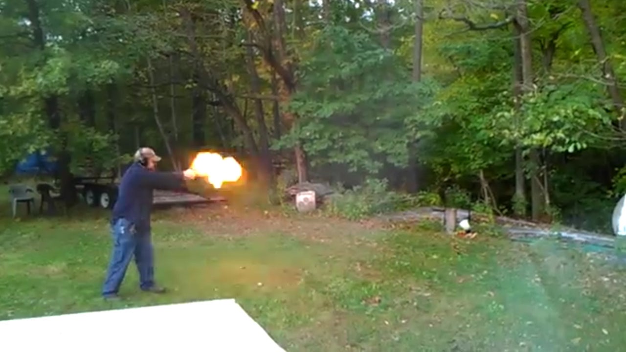 Dieser Baum rächt sich, weil er mit einer Pistole beschossen wird.