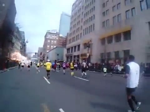 Es tauchen immer mehr Aufnahmen der tragischen Ereignisse rund um den Boston-Marathon auf. Dieser Läufer hält die Explosion mit seiner Stirnkamera fest. Es ist der erste Terroranschlag in den USA seit dem 11. September 2001.