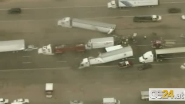 Ein Sandsturm in Arizona löst auf einem Highway eine Massenkarambolage aus. Ein 70-jähriger Mann getötet und zahlreiche Menschen verletzt. Insgesamt waren 16 Fahrzeuge in den Massenunfall verwickelt gewesen.
