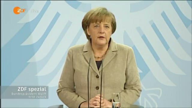 Stellungnahme der Bundeskanzlerin Angela Merkel zum Rücktritt des Bundespräsidenten Chrsitian Wulff