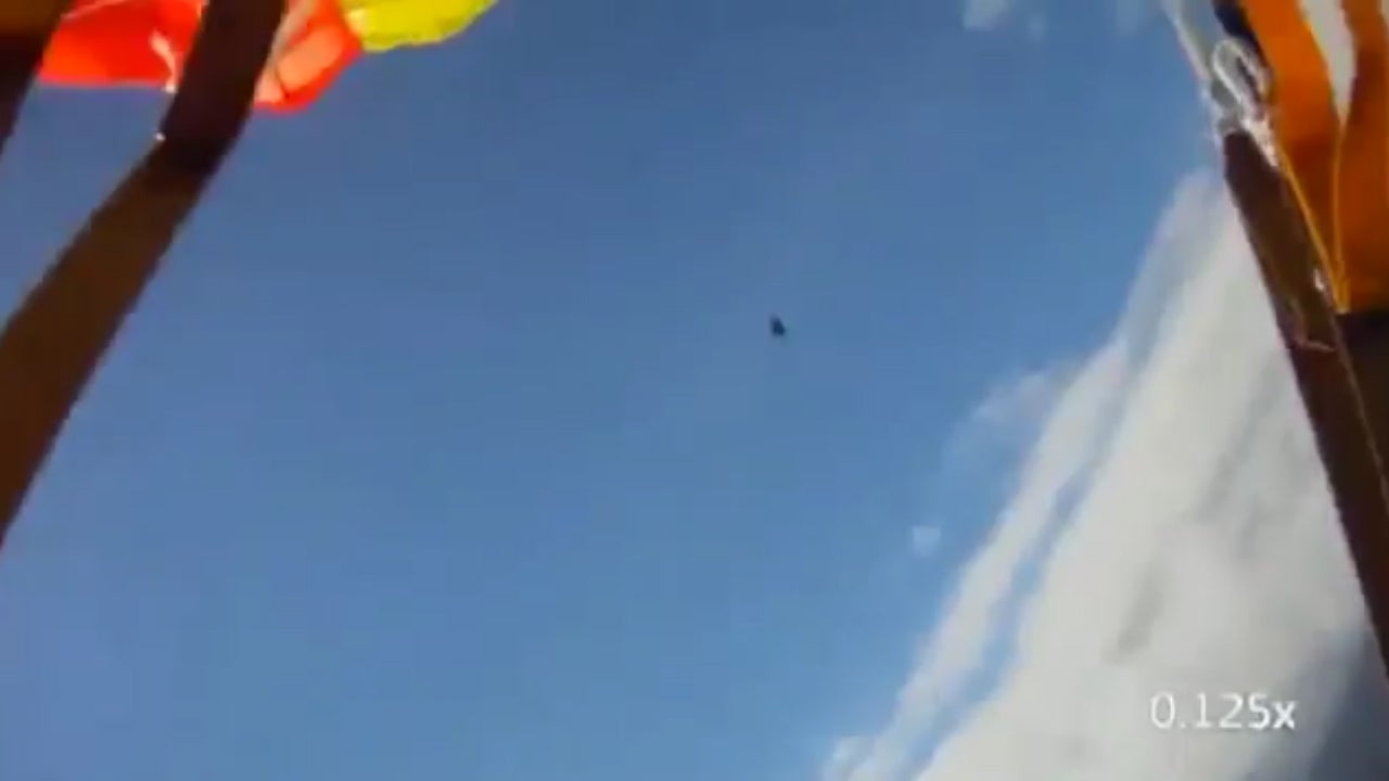 Am norwegischen Fallschirmspringer Anders Helstrup rast ein Meteorit vorbei.