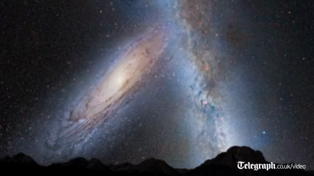 Die Milchstraße wird mit der benachbarten Andromeda-Galaxie zusammenstoßen. Beide rasen mit etwa 400.000 Kilometern pro Stunde aufeinander zu.