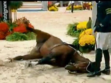 Hickstead, das Pferd von Olympiasieger Eric Lamaze aus Kanada, brach nach absolvierten Parcours beim Ausritt zusammen und starb innerhalb weniger Sekunden. Lamaze und Hickstead waren das 22. Paar am Start, danach wurde das Springen nicht mehr fortgesetzt.