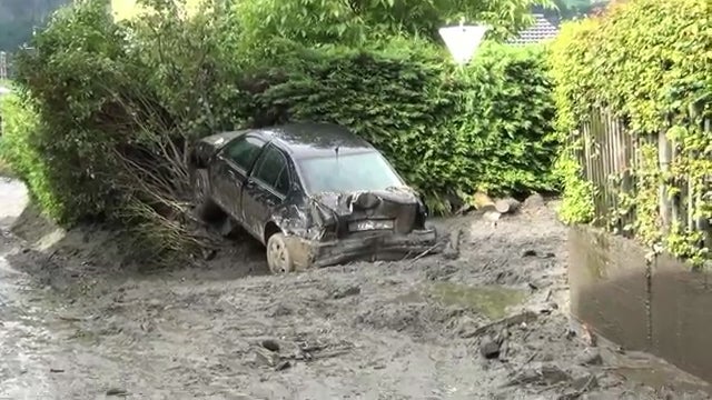 Es sind dramatische Bilder: Heftige Regenfälle haben einen kleinen Bach in der steirischen Gemeinde St. Lorenzen in einen gefährlichen Strom gewandelt. Am Ende riss eine Schlammlawine das halbe Dorf mit sich.